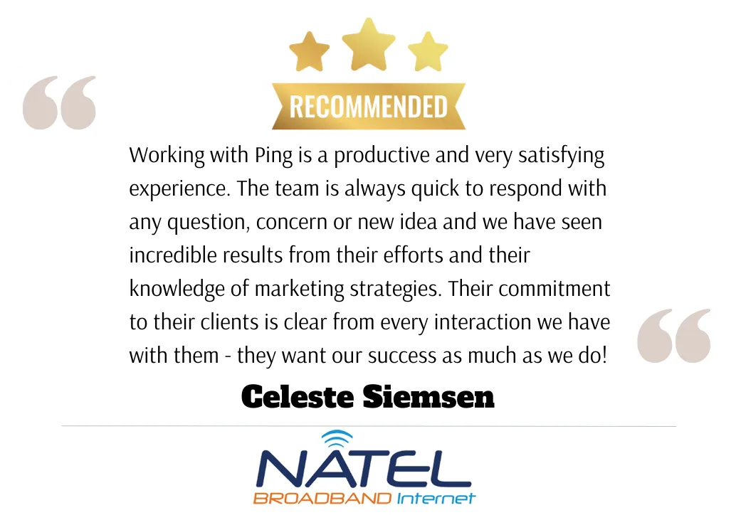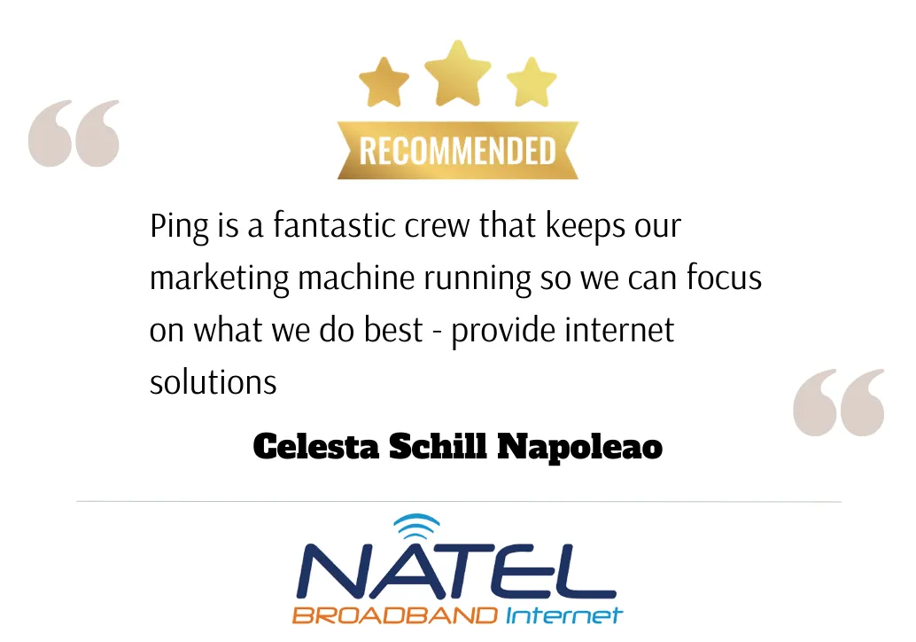 “Our experience with Ping has been awesome… they’ve really taken us from zero to where we are now with marketing and sales. It’s been excellent across the board. I’d recommend them to any other ISP.”
